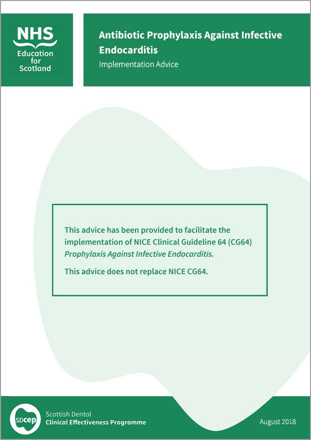 This implementation advice has been endorsed by the Dental Faculties of the Royal College of Surgeons of Edinburgh, the Royal College of Physicians and Surgeons of Glasgow and the Royal College of Surgeons of England, the Faculty of General Dental Practice (UK) and the British Cardiovascular Society. While primarily developed for users in Scotland, use of this advice is also supported by the Department of Health Northern Ireland, the Welsh Government and Public Health England.