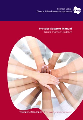 The Practice Support Manual is based on current legislation, professional regulations and guidelines and the opinion of experienced practitioners. During the development of the Practice Support Manual, several expert bodies and specialists [e.g. (UK) Information Commissioner, Scottish Information Commissioner, NHS Education for Scotland, Health and Safety Executive, Scottish Disability Equality Forum] were consulted. The Practice Support Manual was piloted within primary care dental practices and all comments received as a result of the pilot were considered carefully, with the guidance amended where appropriate prior to publication.